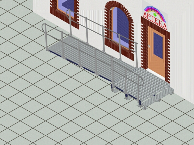 Vorhandener Bürgersteig sollte in gutem Zustand sein. Existierende Eingangsstufen sollten teilweise oder komplett entfernt werden. Die Entfernung von Eingangsstufen in eigener Regie, wird die Montagekosten und die Arbeitszeit verringern. In Auftrag des Kunden kann die Montagefirma bei Montage der Rampe die Stufen entfernen.